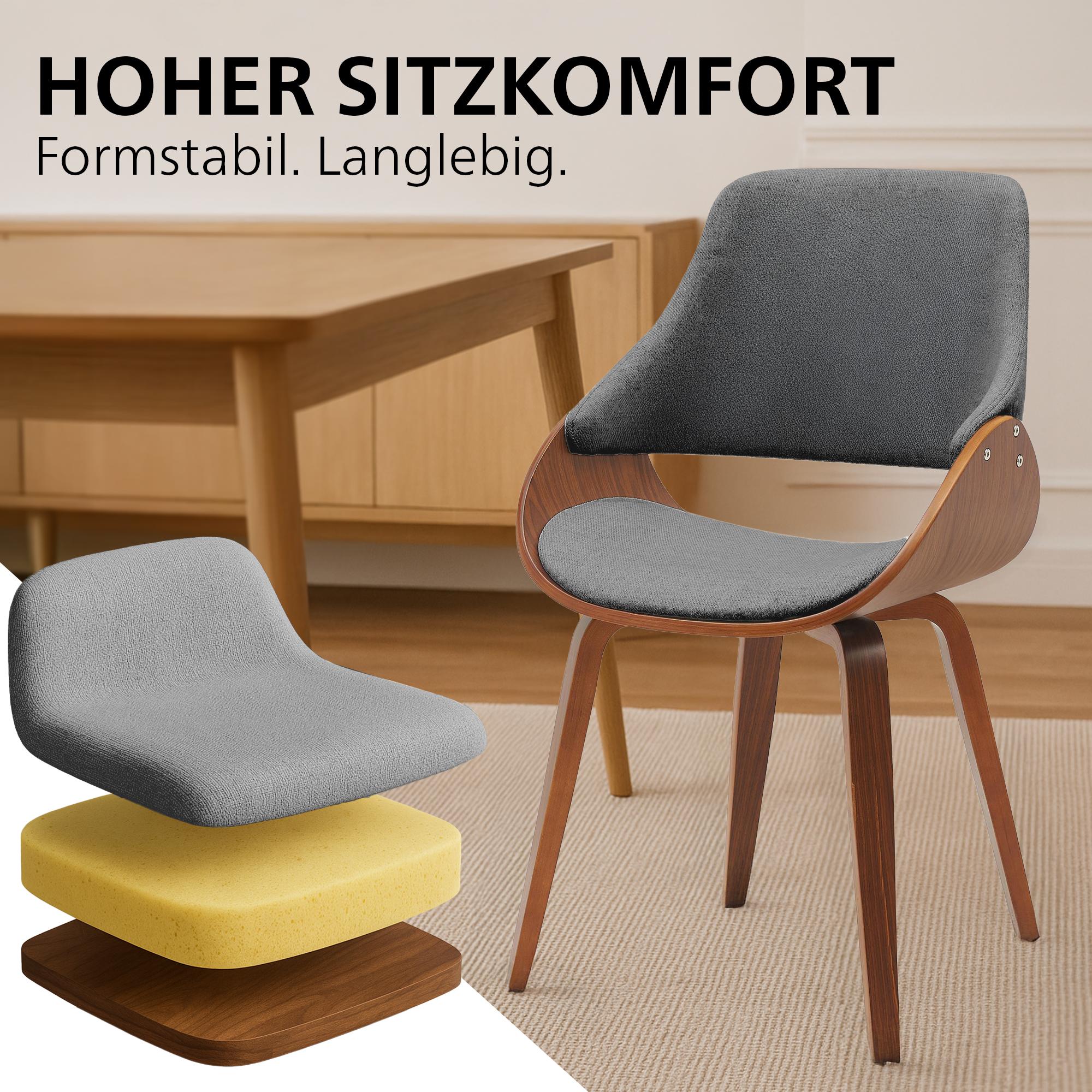 Stabilný rám z kvalitného bukového dreva sľubuje výnimočnú trvácnosť. V kombinácii s teplou optikou orechového dreva a prirodzenou štruktúrou dreva sa stoličková sada stáva elegantným pútačom pozornosti v každej miestnosti.
