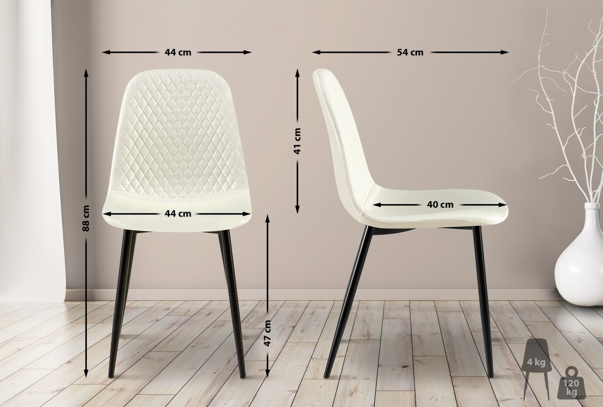 Stoličky Giverny sú pohodlné a zároveň štýlové sedenie na každodenné použitie. Sedačka je potiahnutá ľahko udržiavateľnou látkou a má atraktívny vzhľad. Sedadlá sú navyše zdobené ozdobným prešívaním. Vďaka svojmu modernému 4-nohému kovovému rámu vyzerajú tieto stoličky dobre pri každej príležitosti. Pod nohami sú tiež chrániče podlahy, ktoré zabraňujú poškriabaniu na podlahe. Tieto čalúnené stoličky dodávajú moderný nádych a úžasne doplnia každé obytné prostredie.