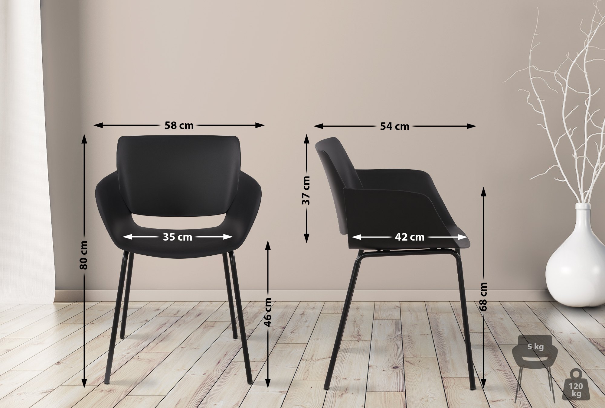 Vďaka tomu je stolička skvelou voľbou ako záhradná stolička, na terasu a balkón, ale je ideálna aj ako kuchynská stolička, jedálenská stolička, bistro stolička a na konferencie.