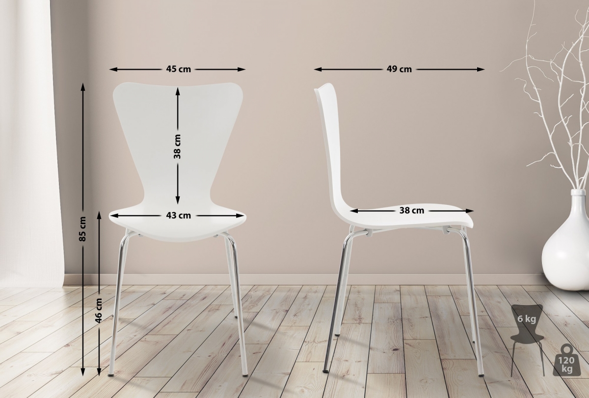 Ergonomické stoličky s nadčasovým dizajnom ideálne do jedálne, čakárne či na veľtrhy. Kovový rám s chrómovým vzhľadom a drevené sedadlo zaručujú pohodlie aj po hodinách sedenia. Stohovateľné, ľahko čistiteľné, s modernými líniami.