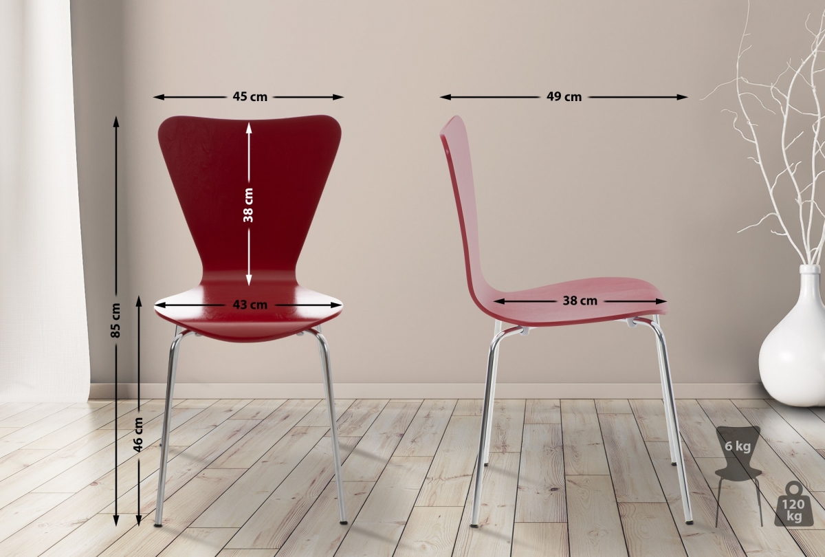 Ergonomická stolička s nadčasovým dizajnom ideálna do jedálne, čakárne či na veľtrhy. Vyniká pohodlným dreveným sedadlom, kovovým rámom s chrómovým vzhľadom a stohovateľnosťou. Rozmery: 81x46x47 cm, výška sedadla 45 cm.