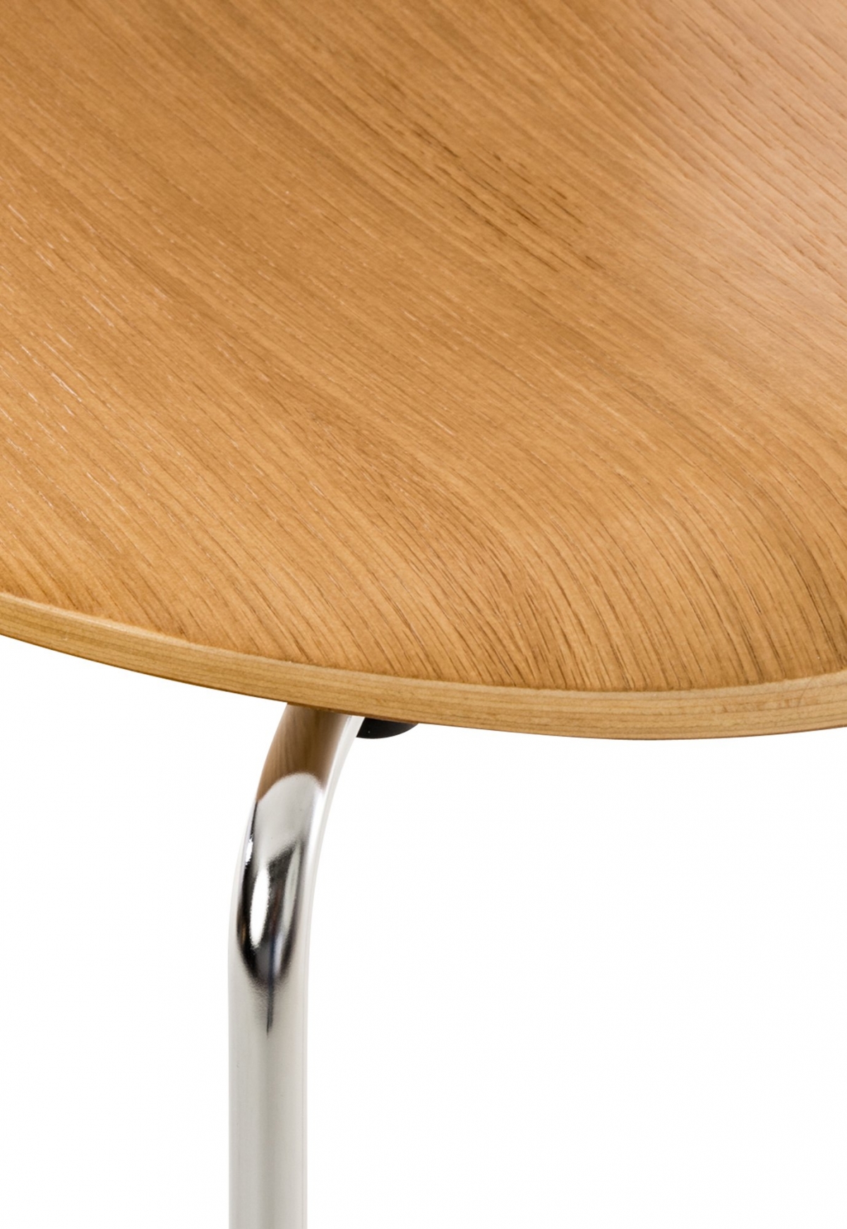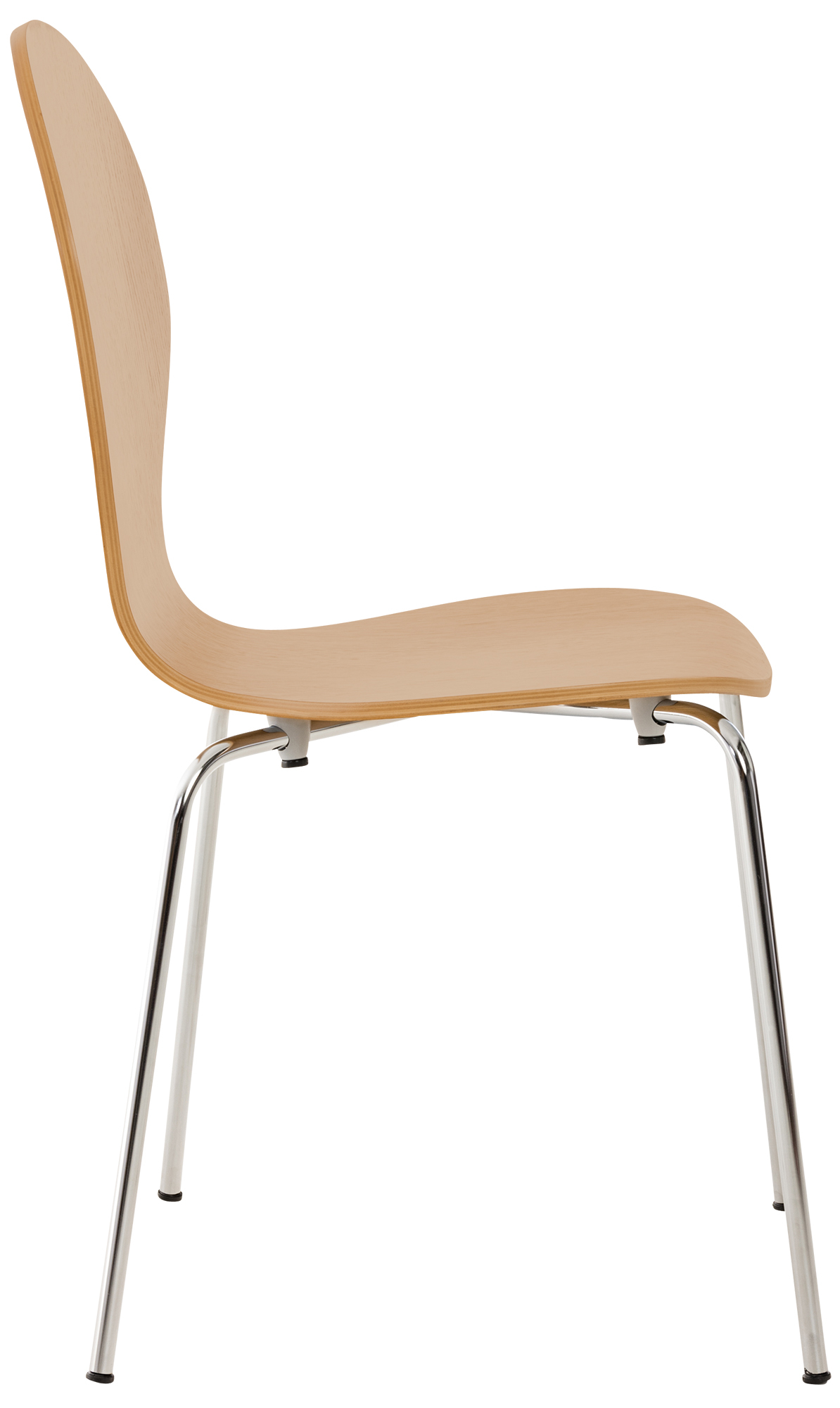 Elegantná stolička s ergonomicky tvarovaným sedákom pre pohodlné dlhodobé sedenie. Vhodná pre domácnosť, čakárne a veľtrhy. Pochrómovaný kovový rám a drevené sedadlo, výška 86 cm, šírka 43 cm, hmotnosť len 3 kg.