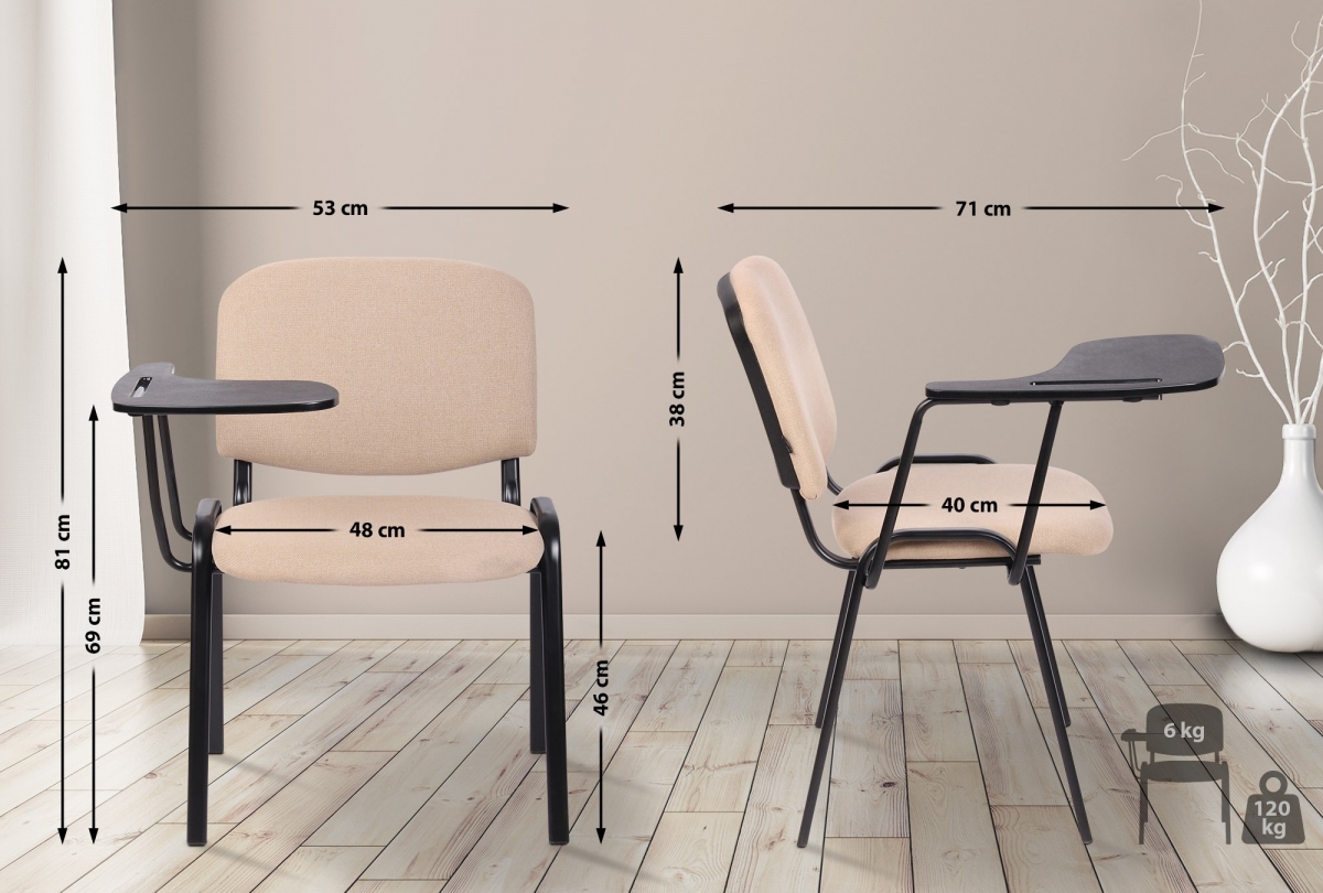 Kreslo Ken so skladacím stolíkom - praktické riešenie pre konferencie a školenia. Ponúka pohodlné čalúnené sedadlo, robustný kovový rám s nosnosťou 120 kg a integrovaný sklápací stolík. Ideálne do kancelárií, konferenčných miestností aj na veľtrhy.