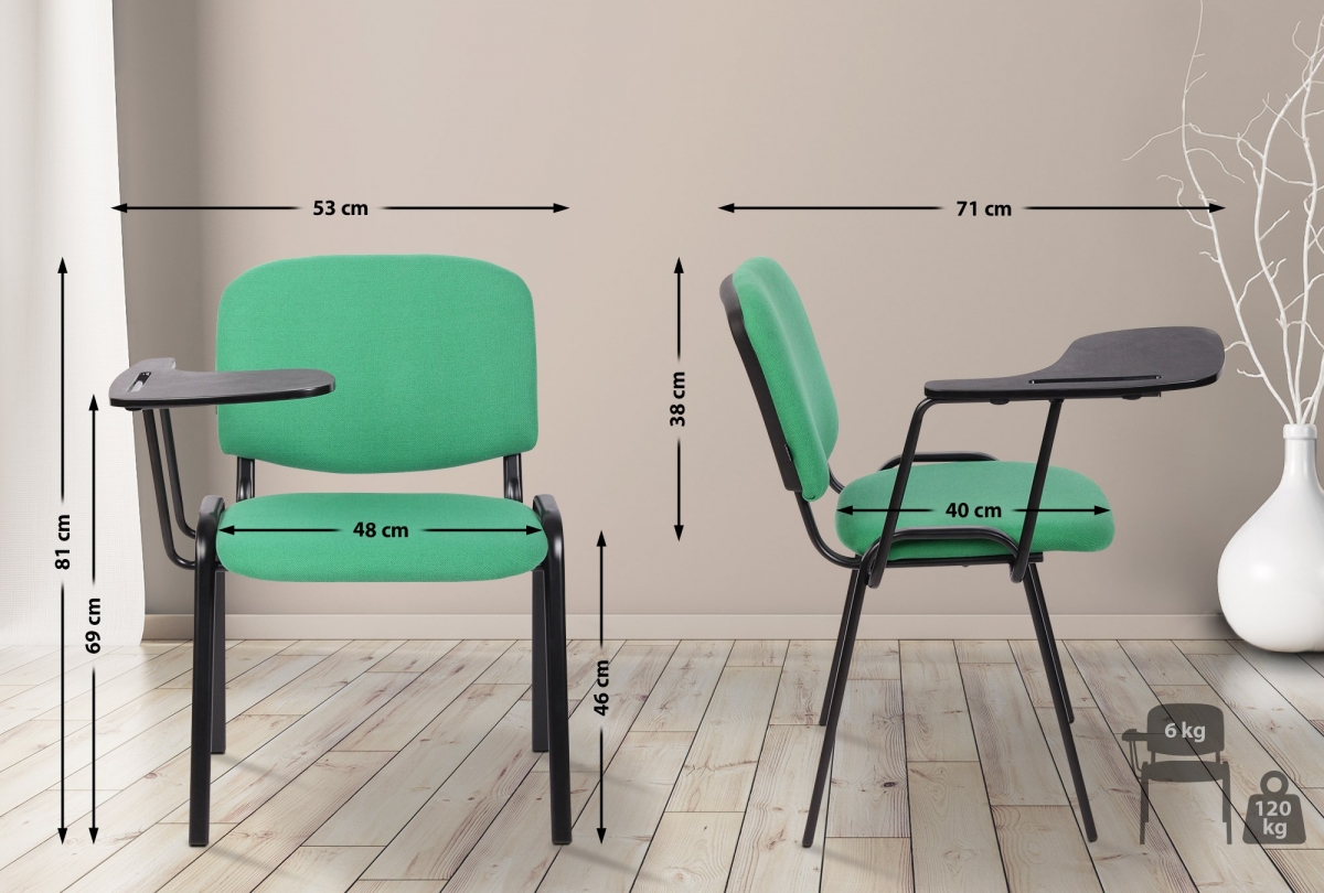 Kreslo Ken so skladacím stolíkom - praktické riešenie pre konferencie a školenia. Ponúka pohodlné čalúnené sedadlo, robustný kovový rám s nosnosťou 120 kg a integrovaný sklápací stolík. Ideálne do kancelárií, konferenčných miestností aj na veľtrhy.