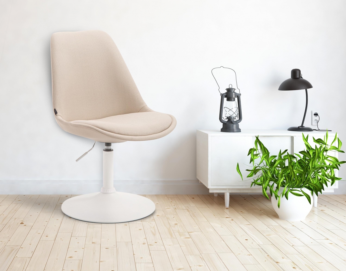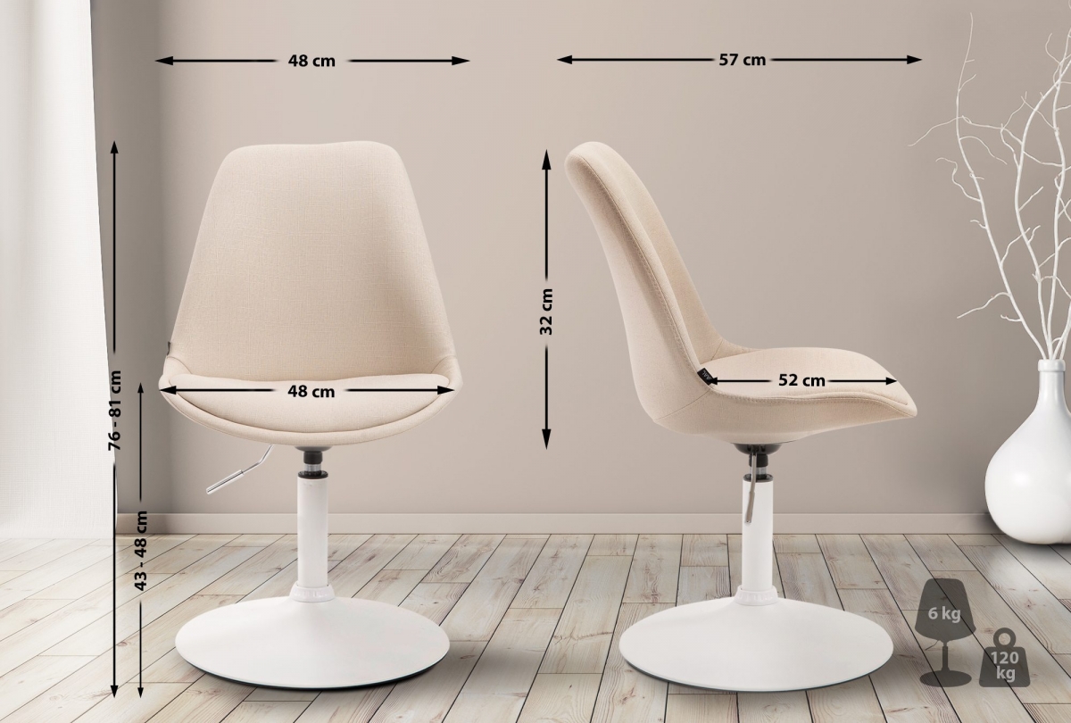 Štýlová a pohodlná stolička s textilným poťahom a čiernym kovovým rámom. Výškovo nastaviteľná a otočná o 360°, ideálna pre každodenné použitie s nosnosťou až 120 kg.