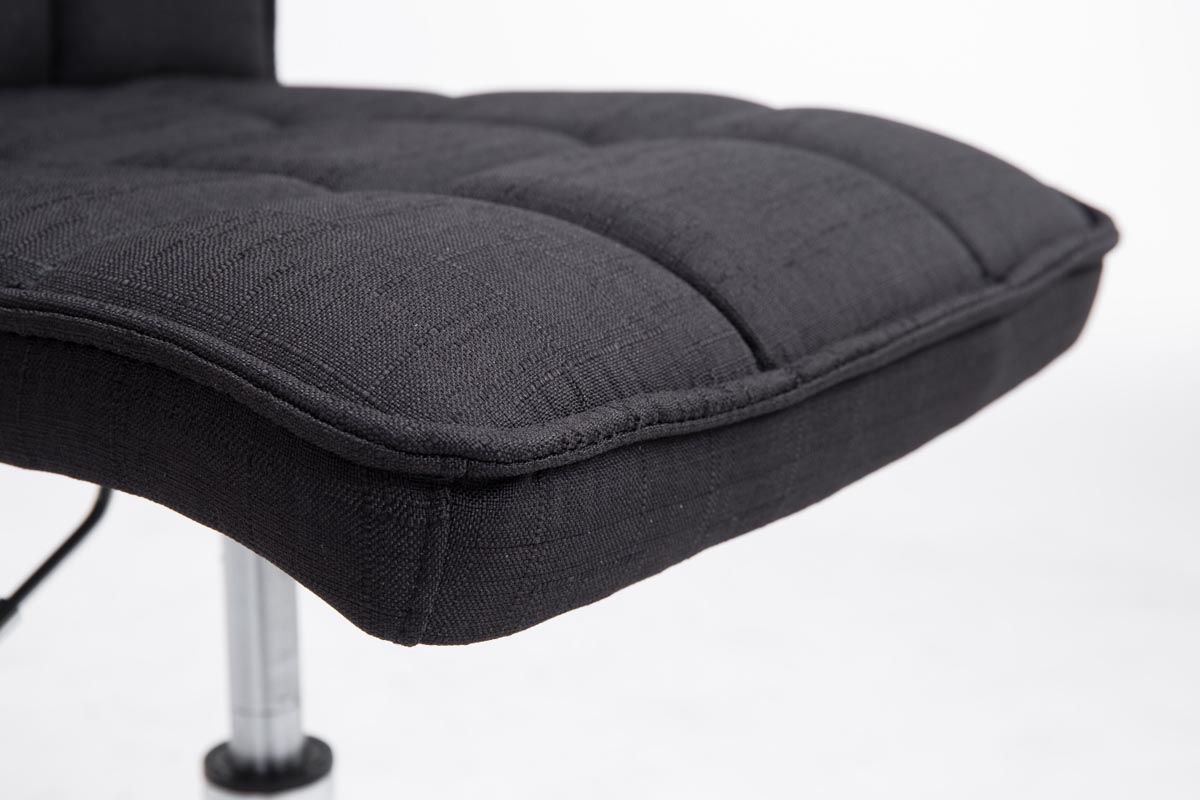 Široké sedadlo a vysoké operadlo umožňujú pohodlné sedenie aj po dlhšiu dobu. Čalúnené sedadlo z látky sľubuje komfort a vyzerá elegantne vďaka dekoratívnemu prešívaniu.
