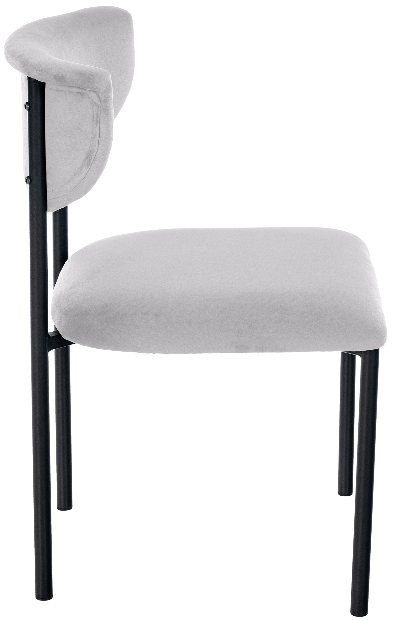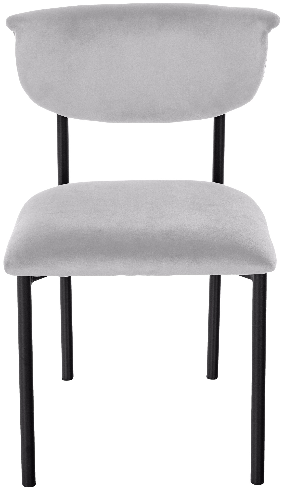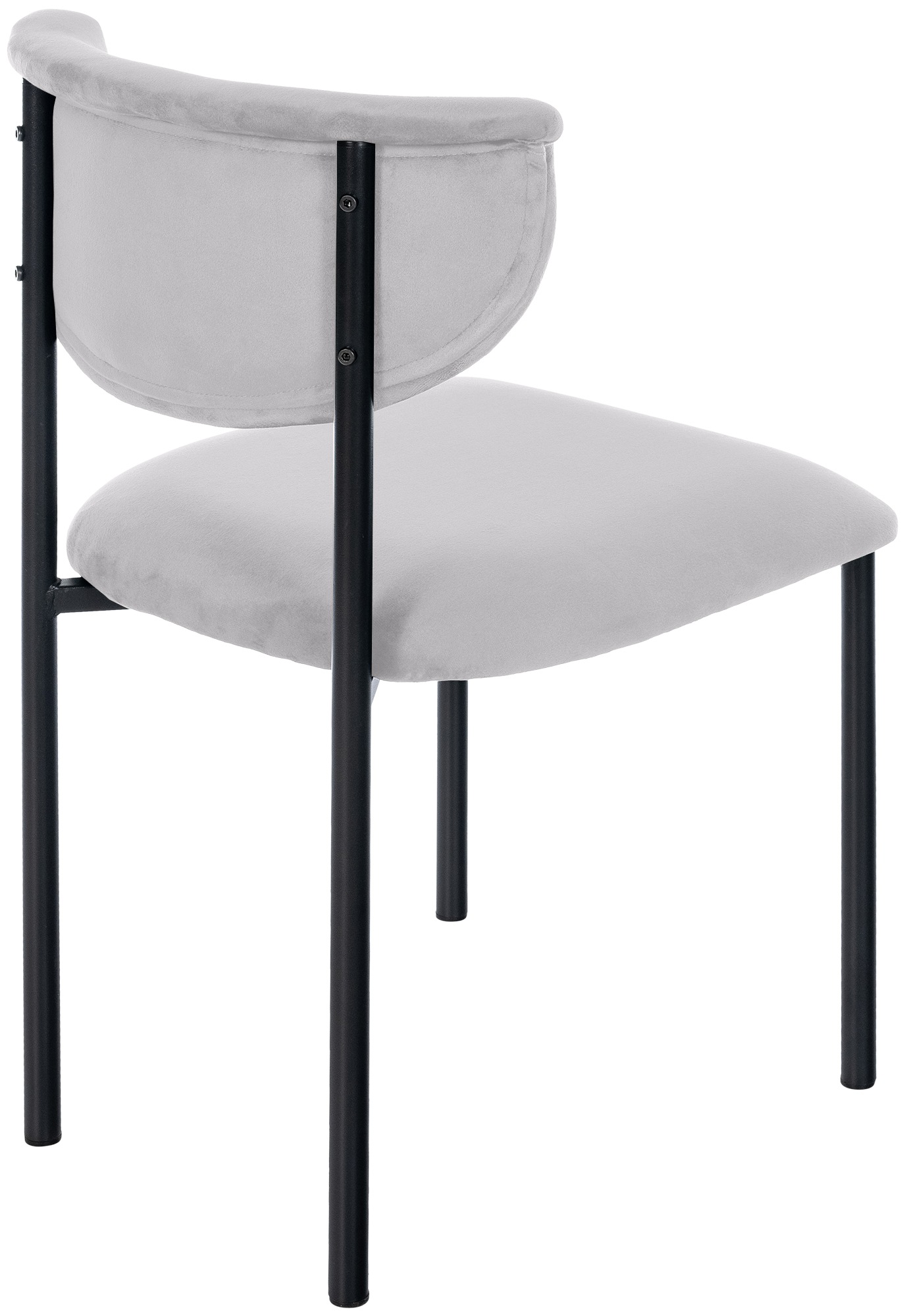 Elegantná jedálenská stolička Gambell s čalúneným sedadlom a operadlom z odolného zamatu. Kombinuje vysoký komfort s nadčasovým dizajnom, stabilným kovovým rámom a nosnosťou až 130 kg - ideálna voľba pre jedáleň, kuchyňu či obývačku.