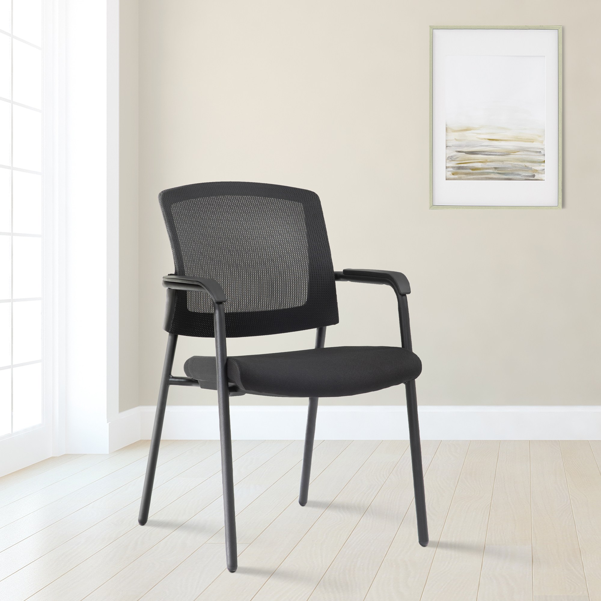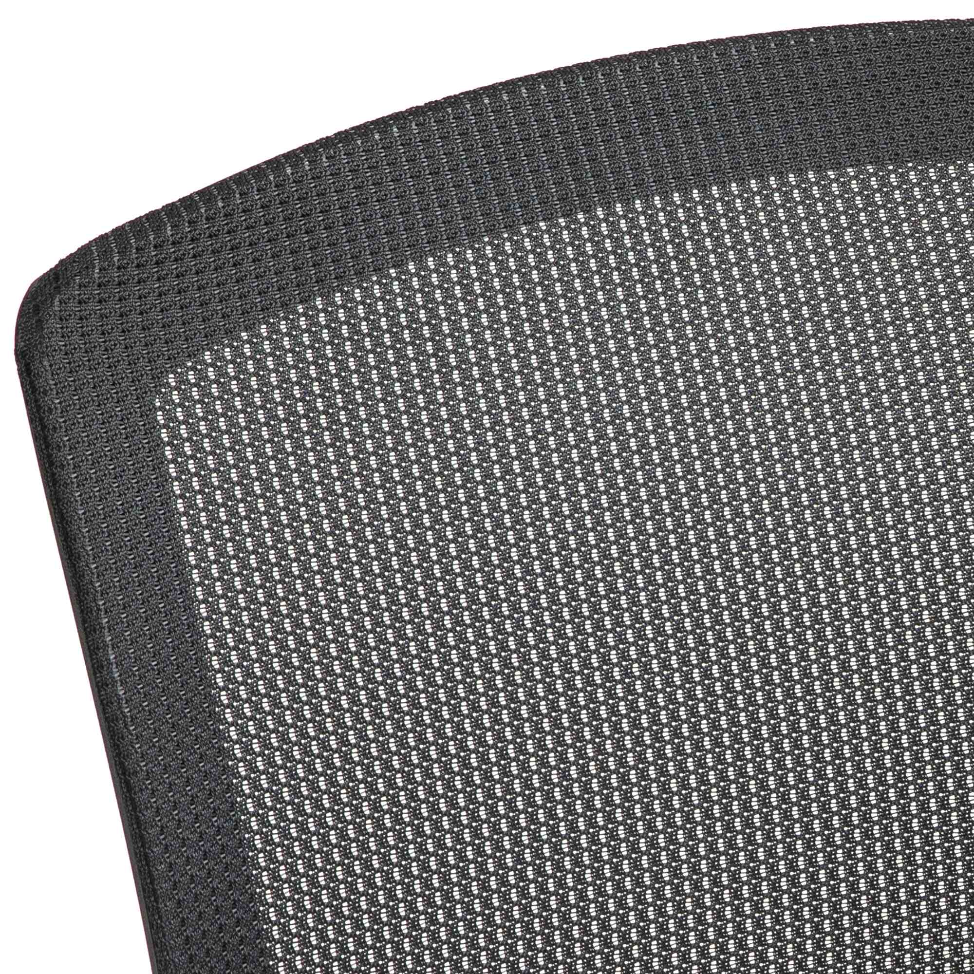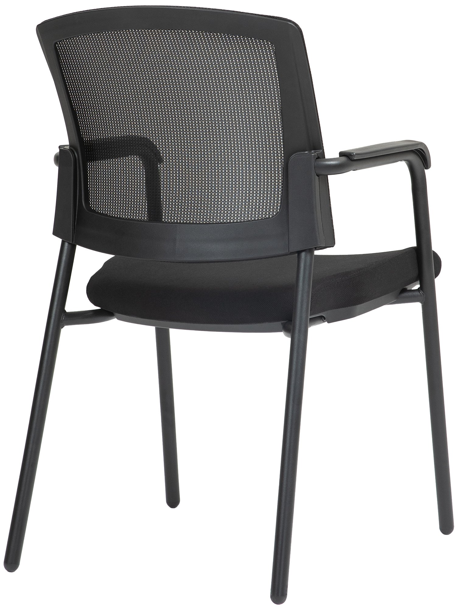 Čalúnené sedadlo potiahnuté odolnou látkou a operadlo ponúkajú dlhotrvajúce pohodlie. Operadlo je potiahnuté priedušným sieťovaným poťahom. Vďaka čiernemu kovovému rámu so štyrmi nohami stolička bezpečne unesie až 150 kilogramov.