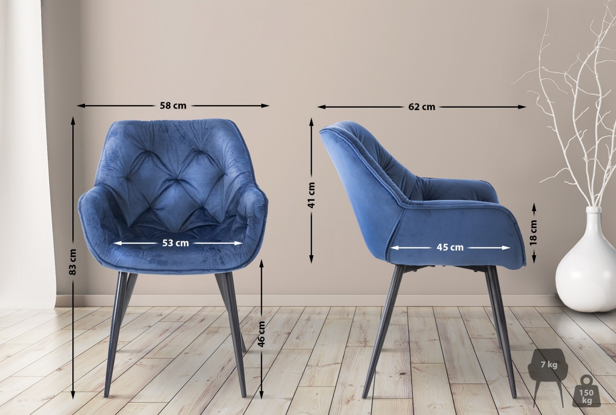 Jedálenská stolička Tanna velvet - elegantný kúsok do moderného interiéru. Zamatové čalúnenie, pohodlné polstrovanie a kovový rám zaručujú komfort aj štýl. Ideálna voľba pre jedáleň alebo obývaciu izbu s nosnosťou až 150 kg.