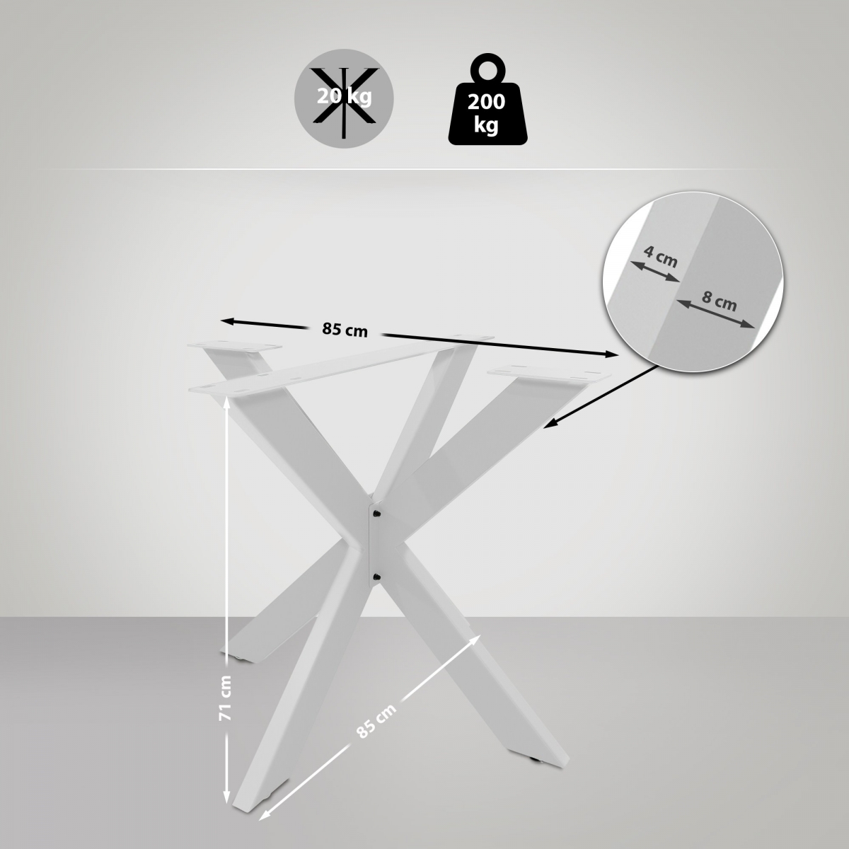Kovová podnož stola Biloxi v industriálnom štýle. Ideálna pre obývacie, jedálenské a pracovné priestory. Stabilné štvorcové profily z práškovej ocele s podlahovými chráničmi. Rozmery: 85x85x71 cm, hmotnosť 20 kg.