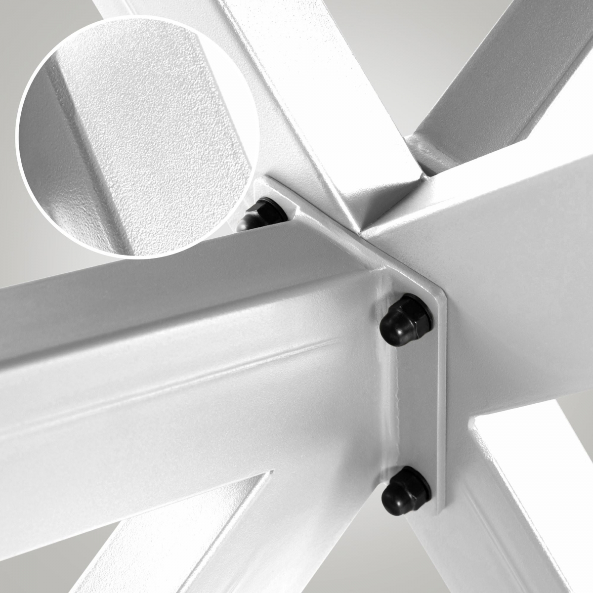 Nohy sú zo stabilných štvorcových profilov, vyrobené z kvalitnej práškovo lakovanej ocele.