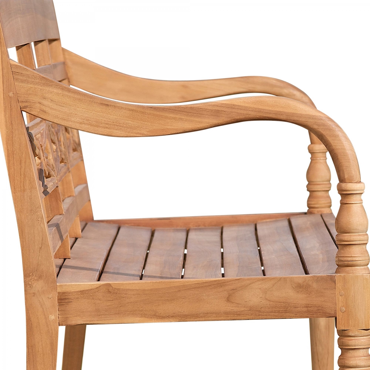 Elegantná teaková lavica s ergonomickým dizajnom pre vašu záhradu. Nadčasový vzhľad, pohodlné sedenie a odolnosť voči poveternostným vplyvom robia z tejto lavičky ideálny kus záhradného nábytku pre celoročné použitie.