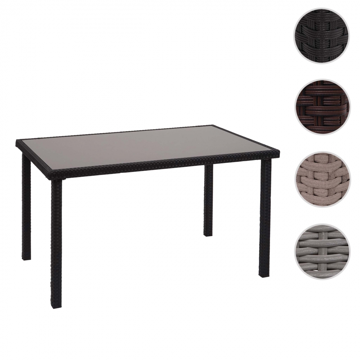 Kombinácia polyratanu a skla dodáva balkónovému stolíku elegantný vzhľad. Tento moderný polyratanový jedálenský stôl je možné podľa želania kombinovať s iným záhradným nábytkom.