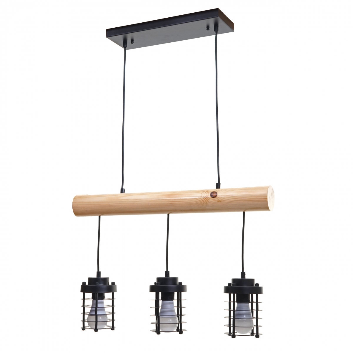 Vintage stropné závesné svietidlo s industriálnym nádychom. Kombinácia dreva kaučukovníka a kovu vytvára jedinečný dizajn, ideálny pre byty, kaviarne či reštaurácie. Ponúka 3 objímky E27 pre dostatok štýlového osvetlenia.