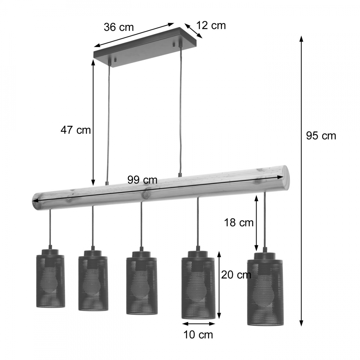 Toto stropné závesné svietidlo s vintage vzhľadom kombinuje drevo kaučukovníka a kov pre unikátny industriálny štýl. Ideálne do bytu, kaviarne či reštaurácie, ponúka 3 x E27 objímky a výrazný dizajn s rozmermi 95 x 99 x 12 cm.